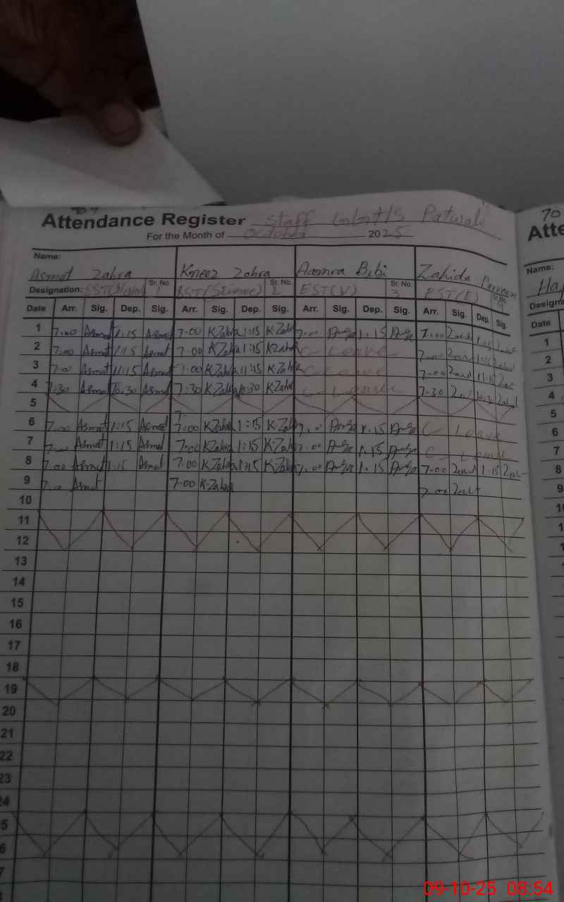| Name: As**** Za**** Designation: (School Headmaster's/Headmistress's) S.S.T.(GEN) Phone/Cell Number: 03**** |