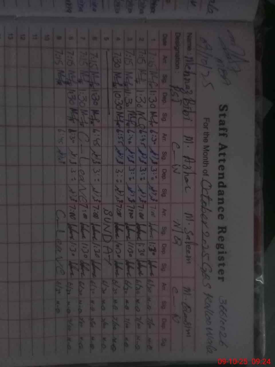 | CNIC | Full Name | Designation | R/C | Absence During Last Calender Month |