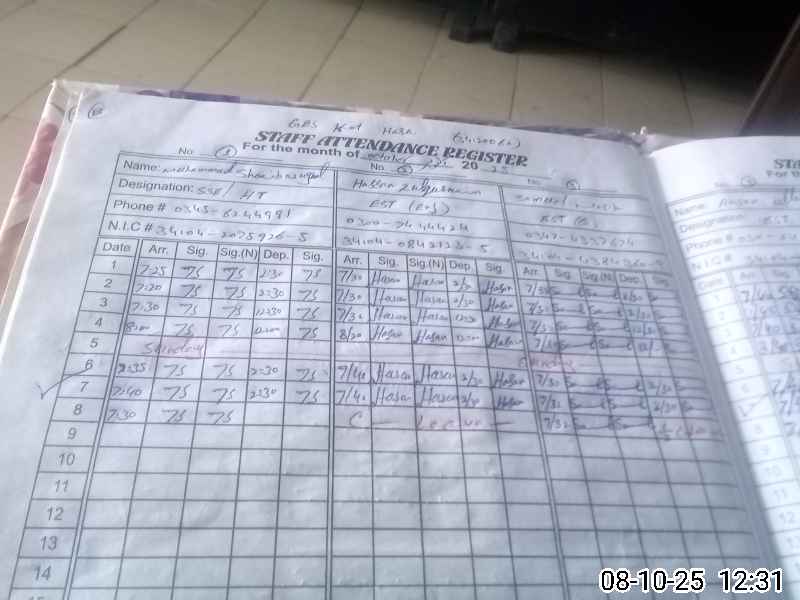 | CNIC | Full Name | Designation | R/C | Absence During Last Calender Month |