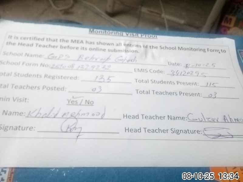| EMIS Code: 34120295 | Name of School: GPS BAHROOP GHARR | |||