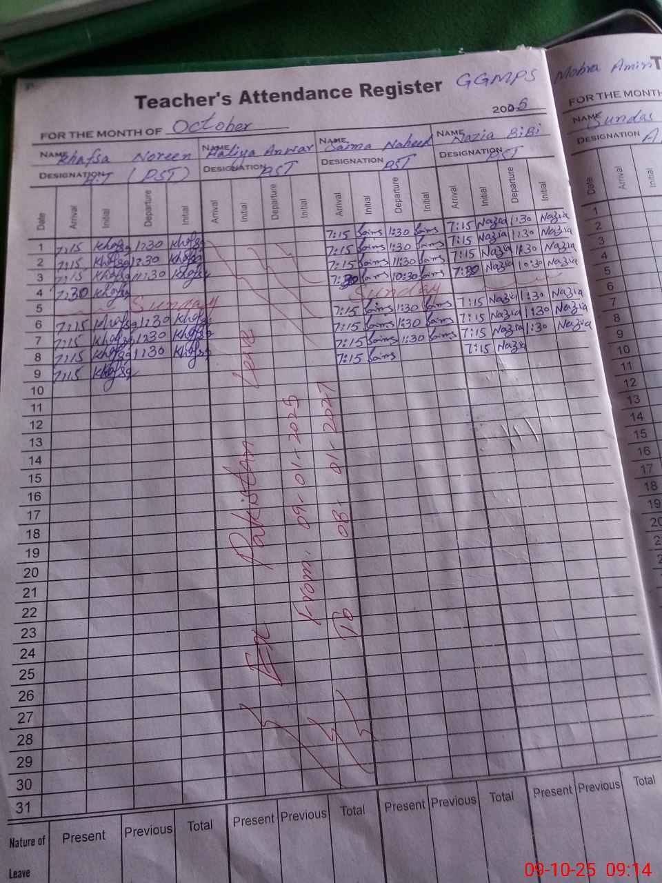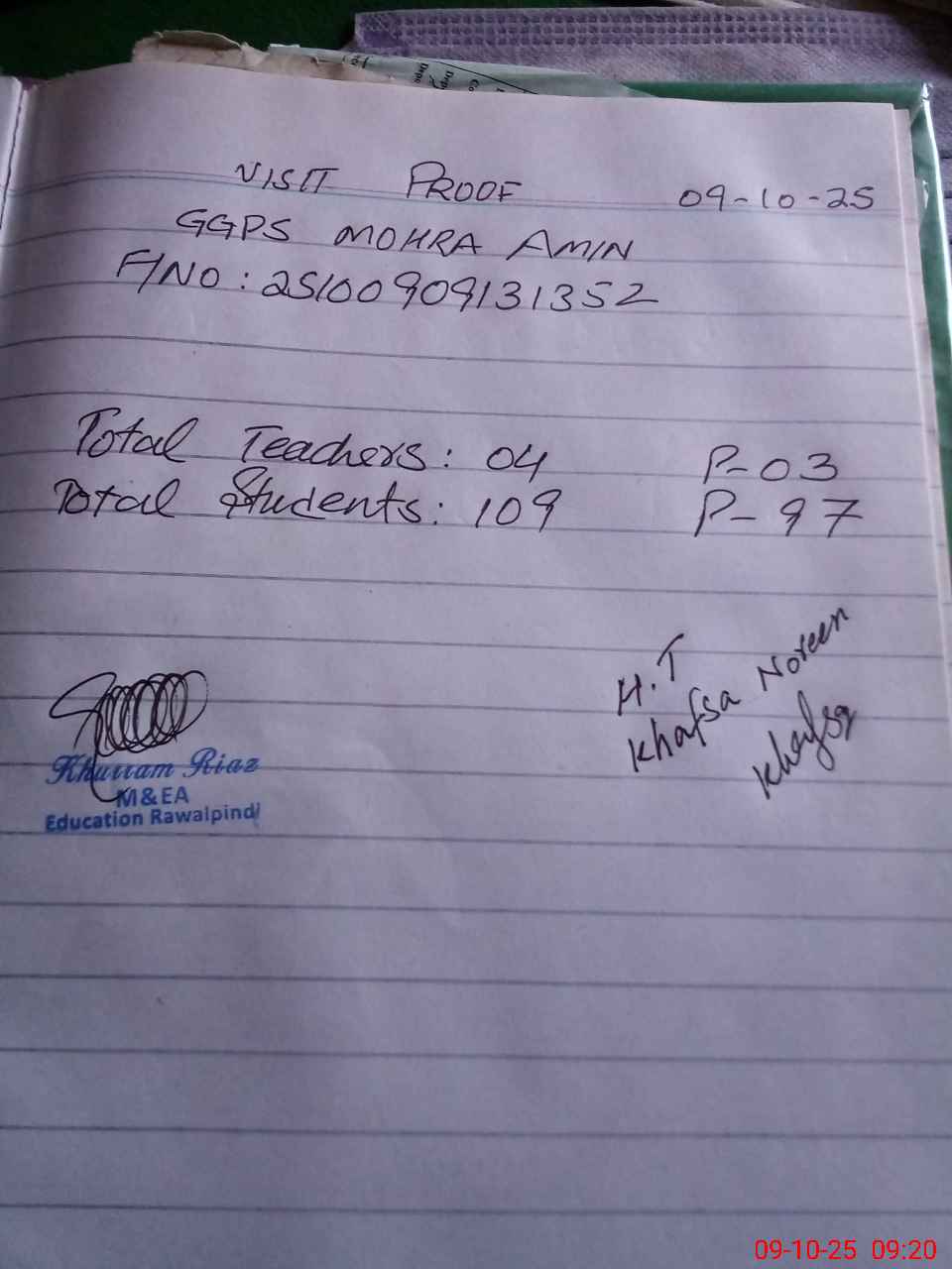 | Monitoring Date: 09-10-2025 | Start Time: 09-10-2025 08:55 AM | End Time: 09-10-2025 09:37 AM | Name of MEA: Kh**** Ri**** | |