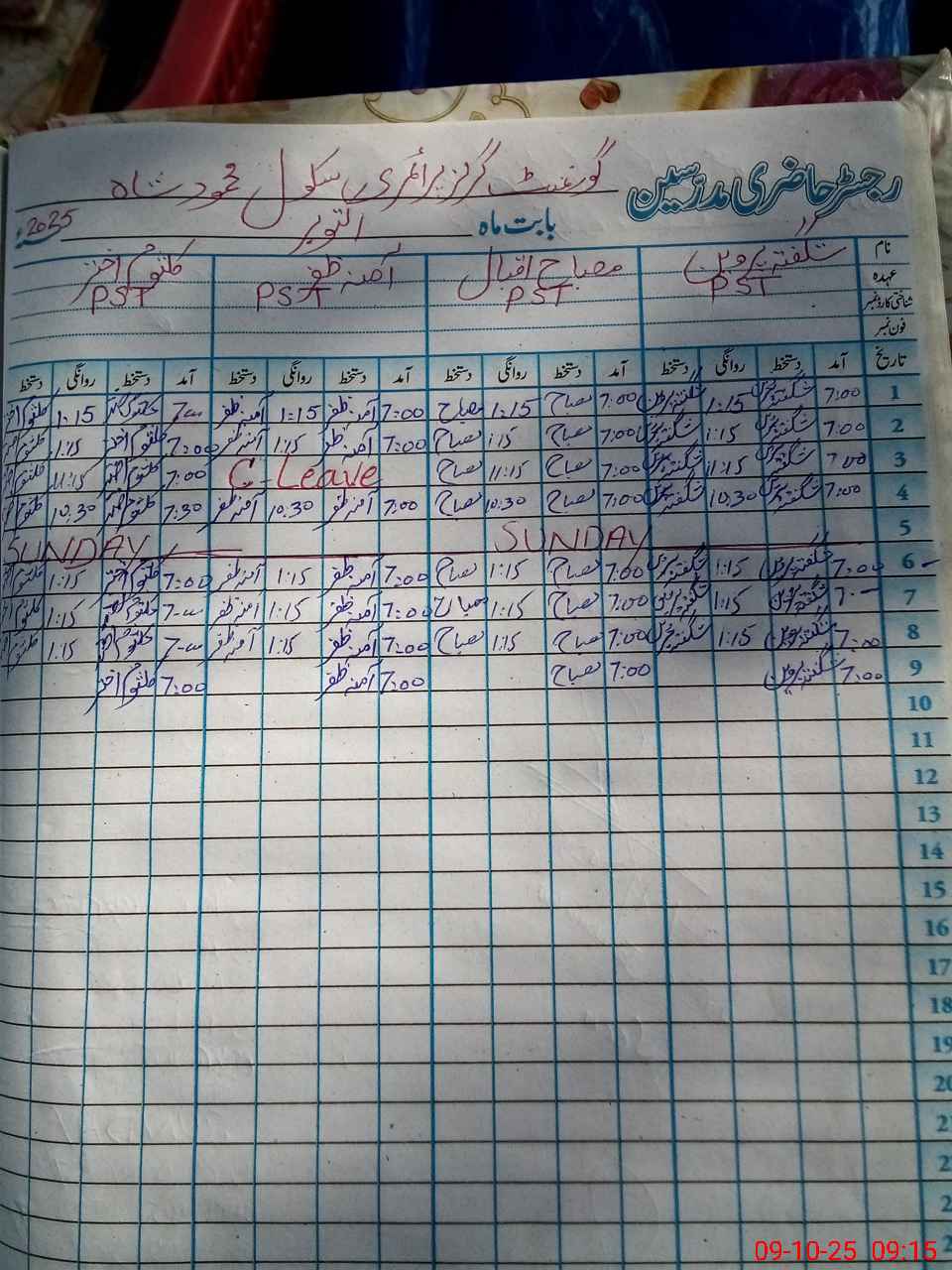 | Name: SH**** PA**** Designation: (School Headmaster's/Headmistress's) PST Phone/Cell Number: 03**** |