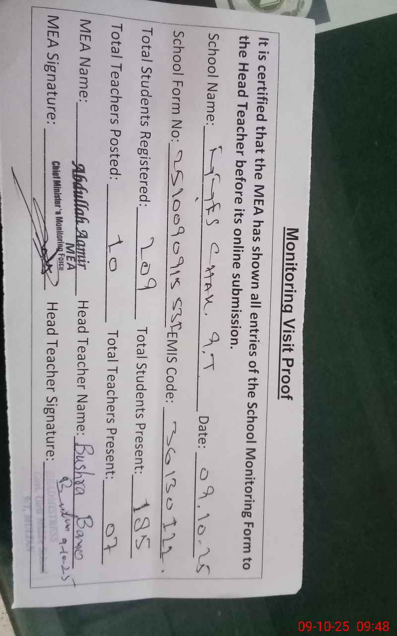 | EMIS Code: 36130122 | Name of School: GGES CHAK NO.9/T MULTAN | |||