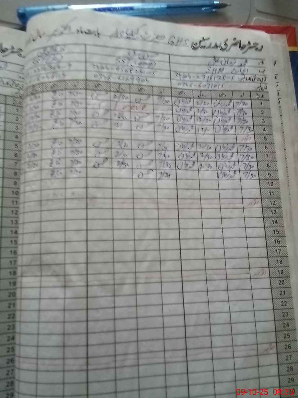 | CNIC | Full Name | Designation | R/C | Absence During Last Calender Month |