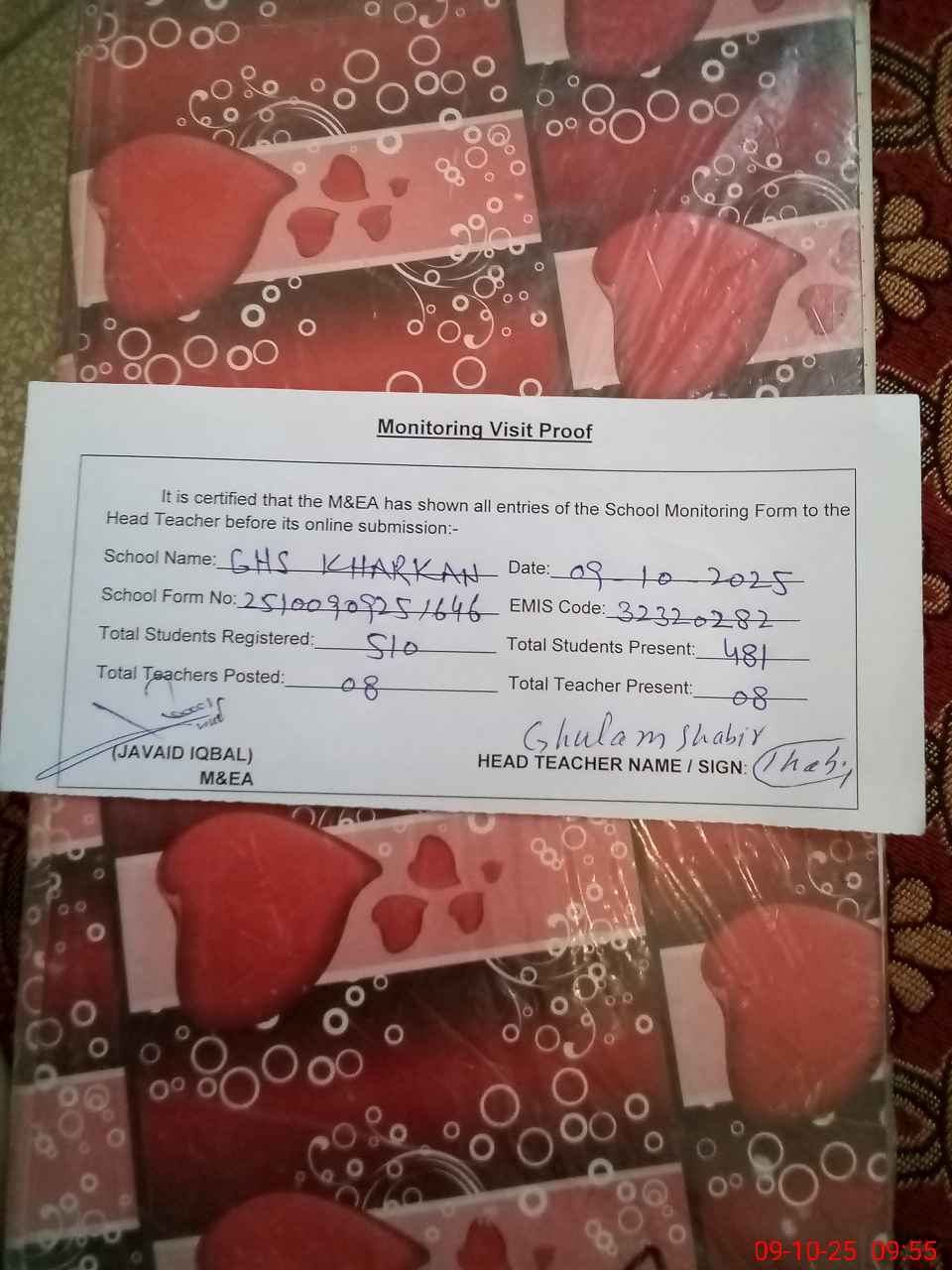 | EMIS Code: 32320282 | Name of School: GHS KHARKIN | |||