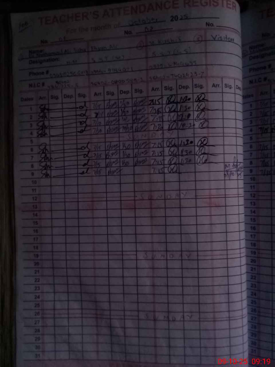 | CNIC | Full Name | Designation | R/C | Absence during last cal. month |