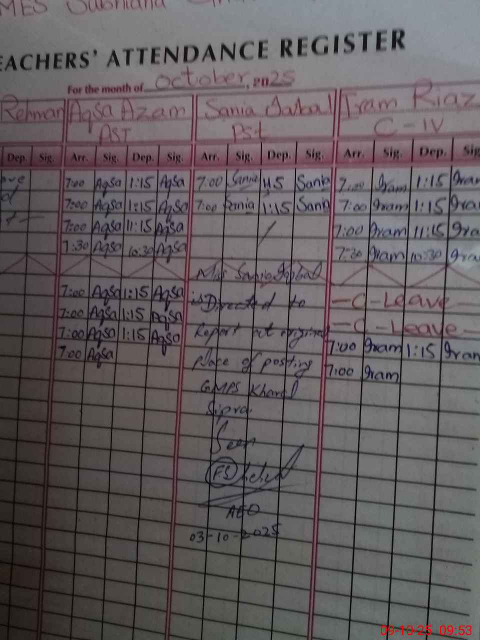 | 33**** | Sa**** Re**** | PST | Regular | 0 | 0 | 0 | 0 | 0 | 0 | 0 | 0 | 0 | Absent (Un-Authorized) |