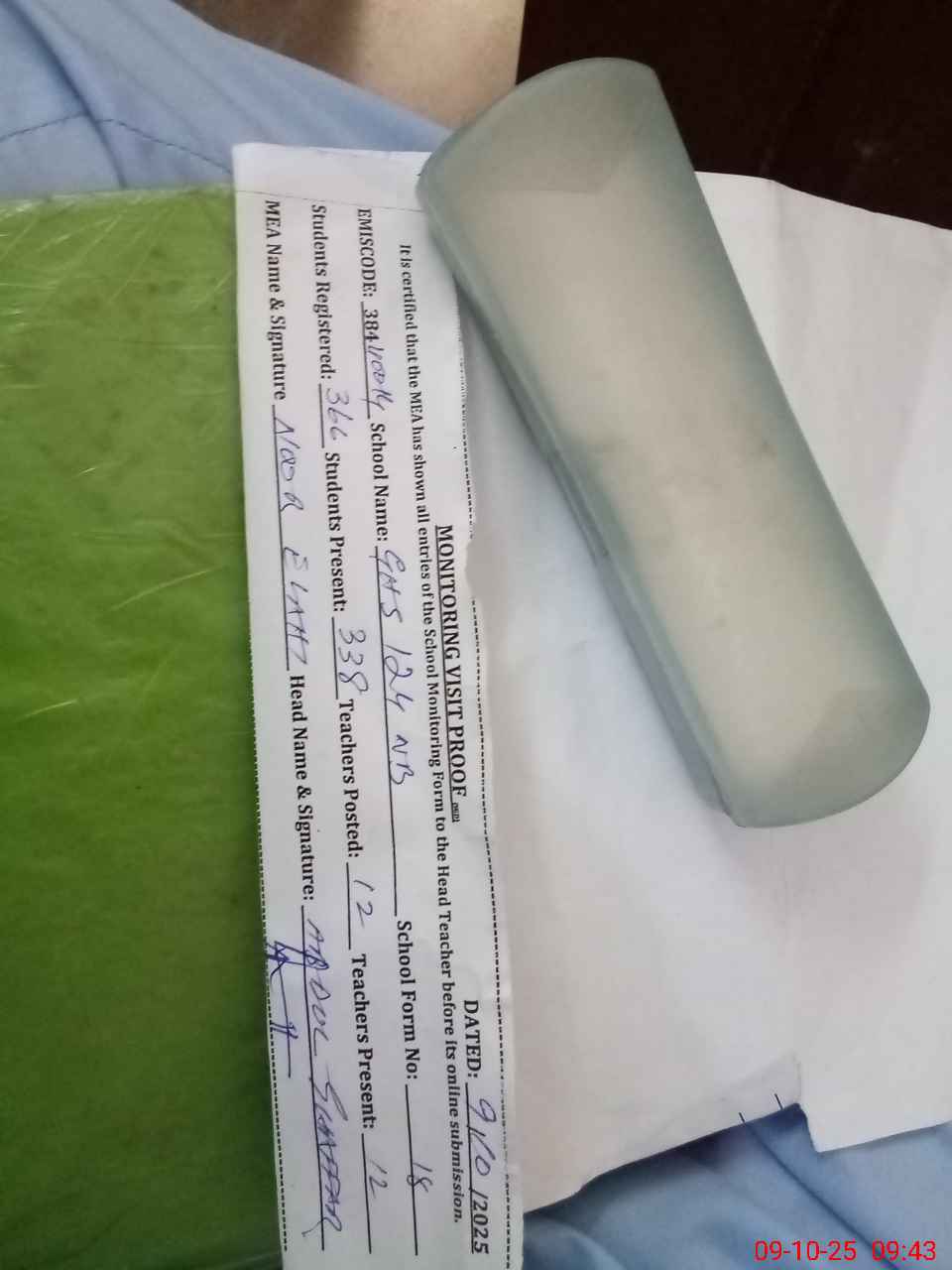 | Attendance Register | Head Teacher | MEA with School | Visit Proof |