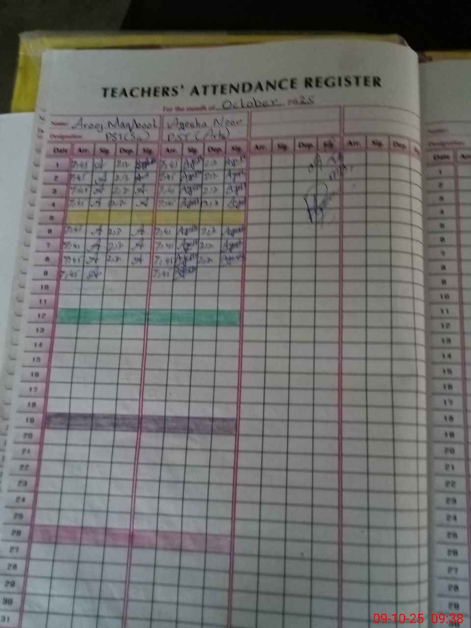 | CNIC | Full Name | Designation | R/C | Absence During Last Calender Month |