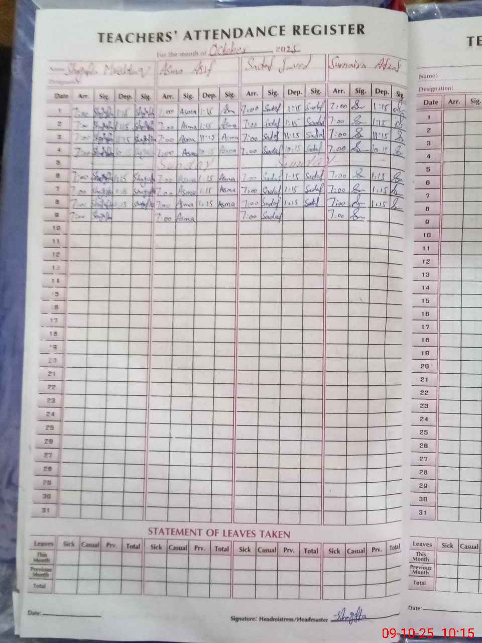 | Attendance Register | Head Teacher | MEA with School | Visit Proof |