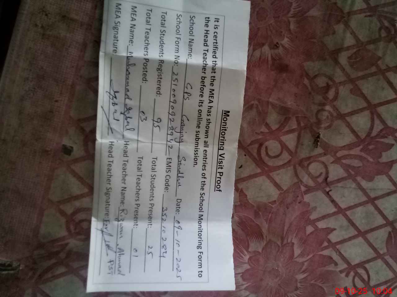 | EMIS Code: 35210284 | Name of School: GPS GANJAY SINDHU | |||