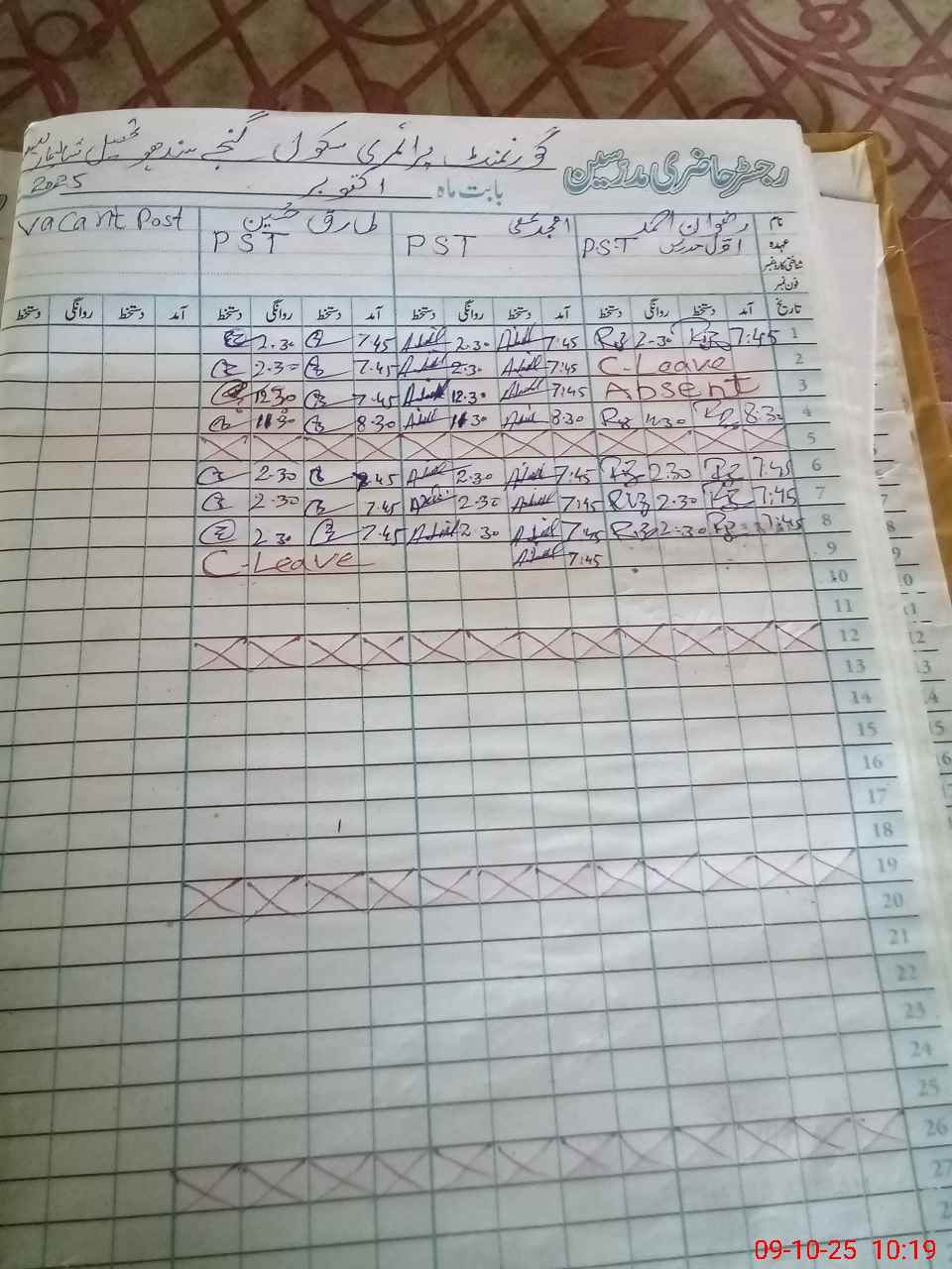 | Name: RI**** AH**** Designation: (School Headmaster's/Headmistress's) PST Phone/Cell Number: 03**** |