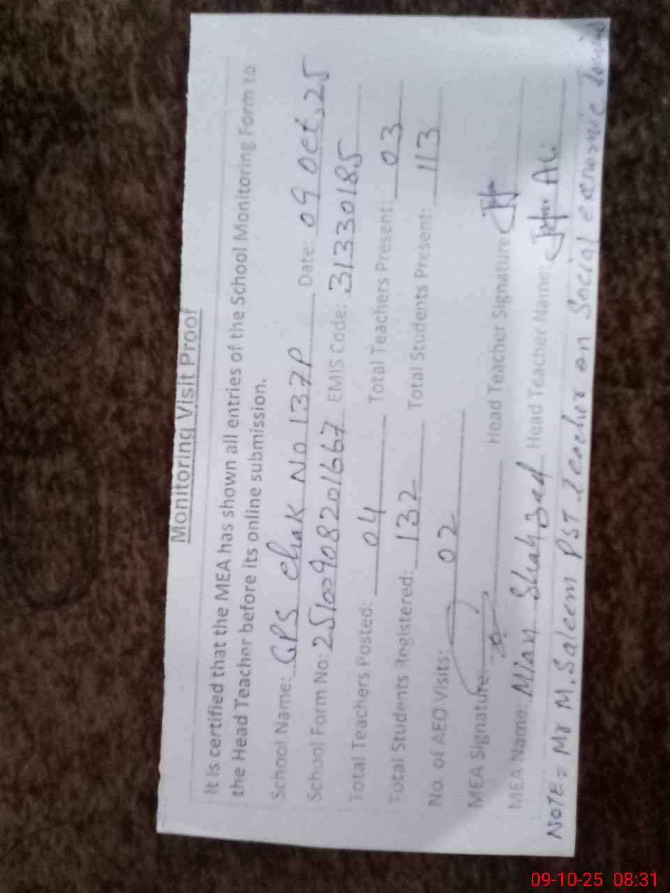 | EMIS Code: 31330185 | Name of School: GPS CHAK NO. 137/P | |||