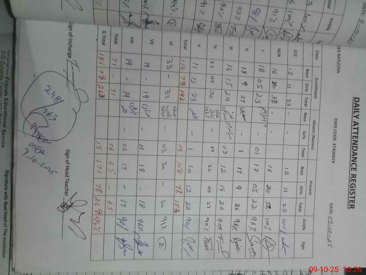 | Attendance Register | Head Teacher | MEA with School | Visit Proof |