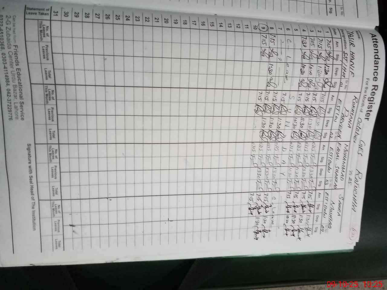 | CNIC | Full Name | Designation | R/C | Absence During Last Calender Month |