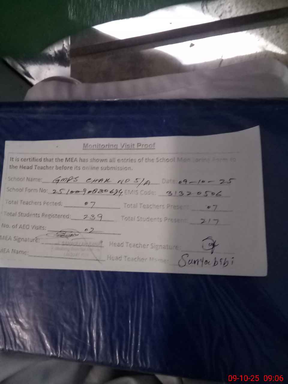 | EMIS Code: 31320506 | Name of School: GMPS CHAK NO.5/A | |||