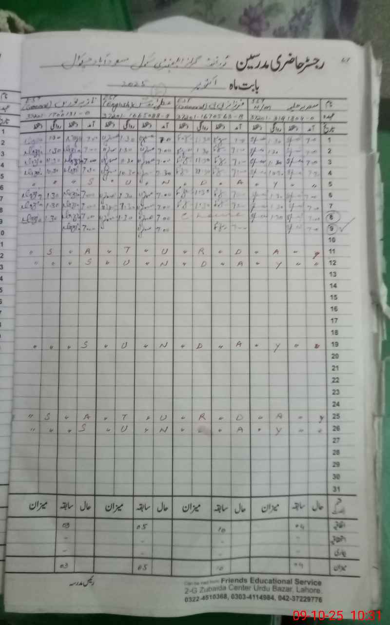 | 61**** | Mu**** Am**** Kh**** | PST | Temporary | 30 | 0 | 0 | 30 | 0 | 0 | 0 | 0 | 0 | Maternity |
