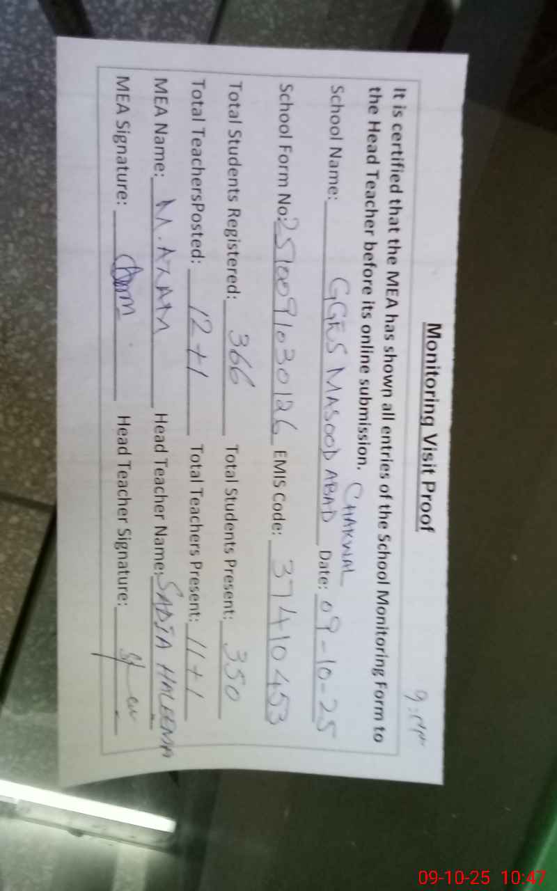 | EMIS Code: 37410453 | Name of School: GGES MASOOD ABAD | |||