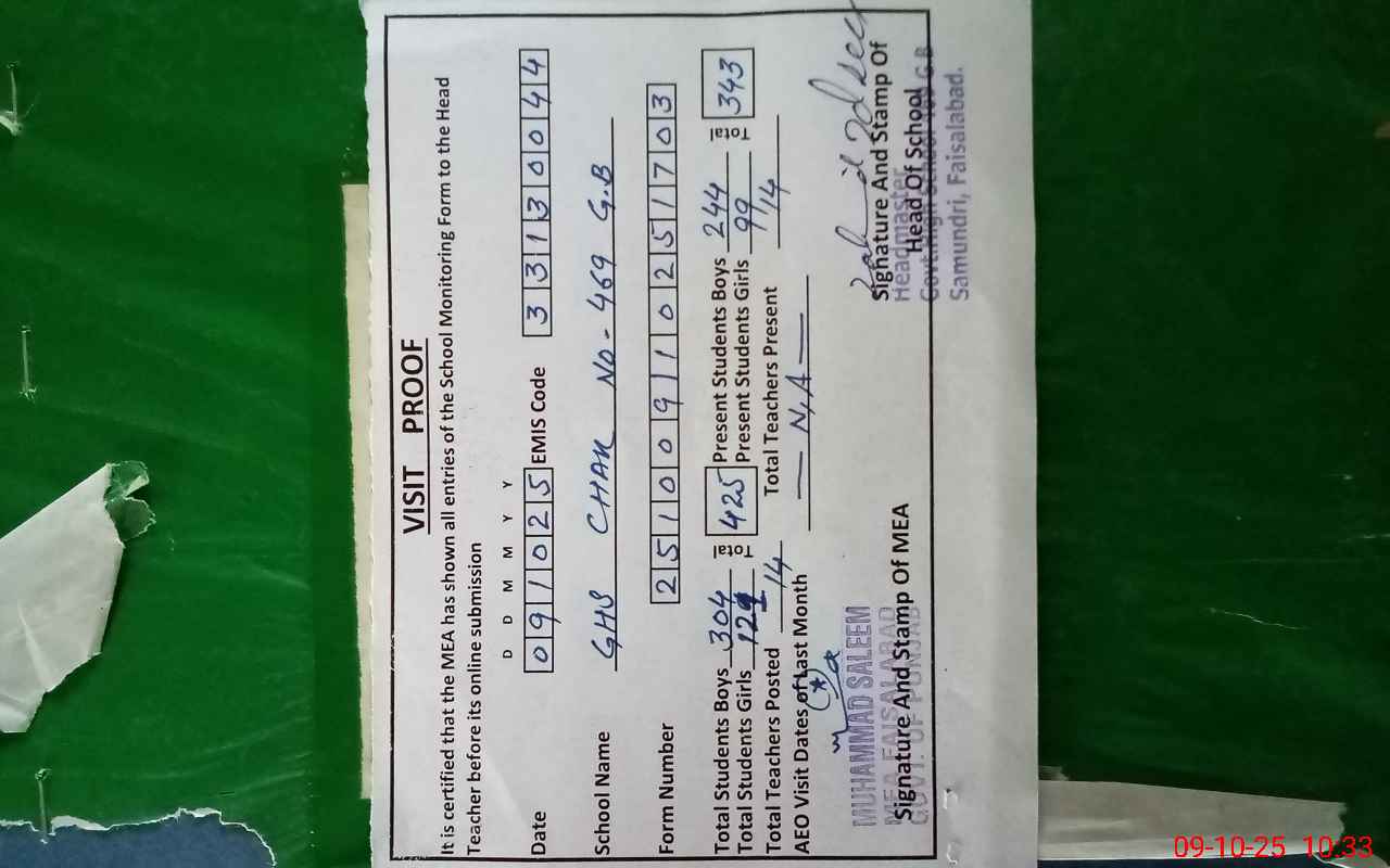 | EMIS Code: 33130044 | Name of School: GHS CHAK 469 GB SAMUNDRI | |||