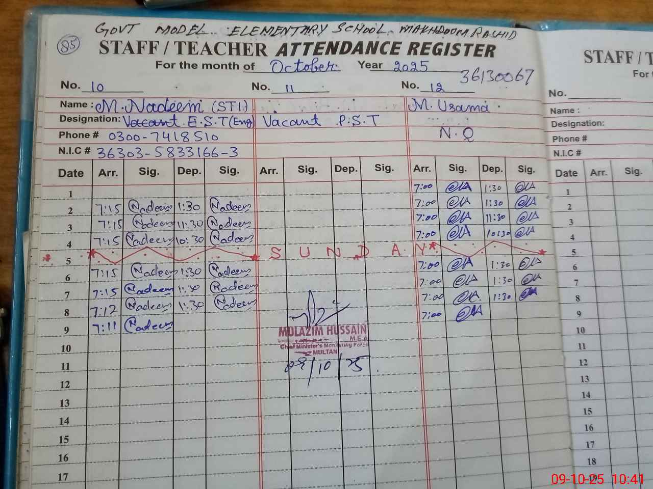 | District: MULTAN | Tehsil: MULTAN SADAR | Markaz: MAKHDOOM RASHEED - MALE | Level: Middle | |