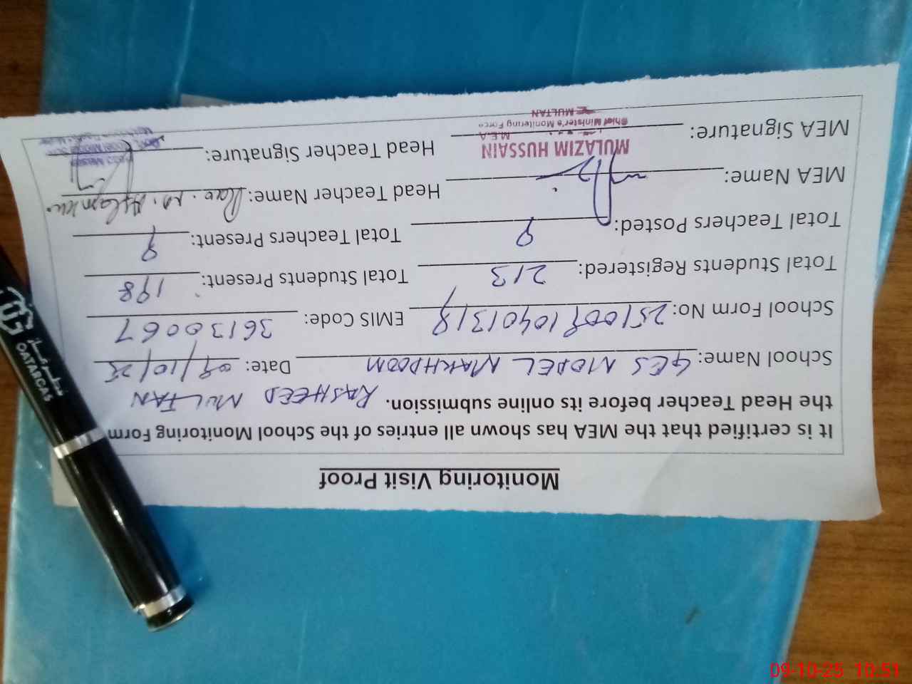 | EMIS Code: 36130067 | Name of School: GES MODEL MAKHDOOM RASHEED MULTAN | |||