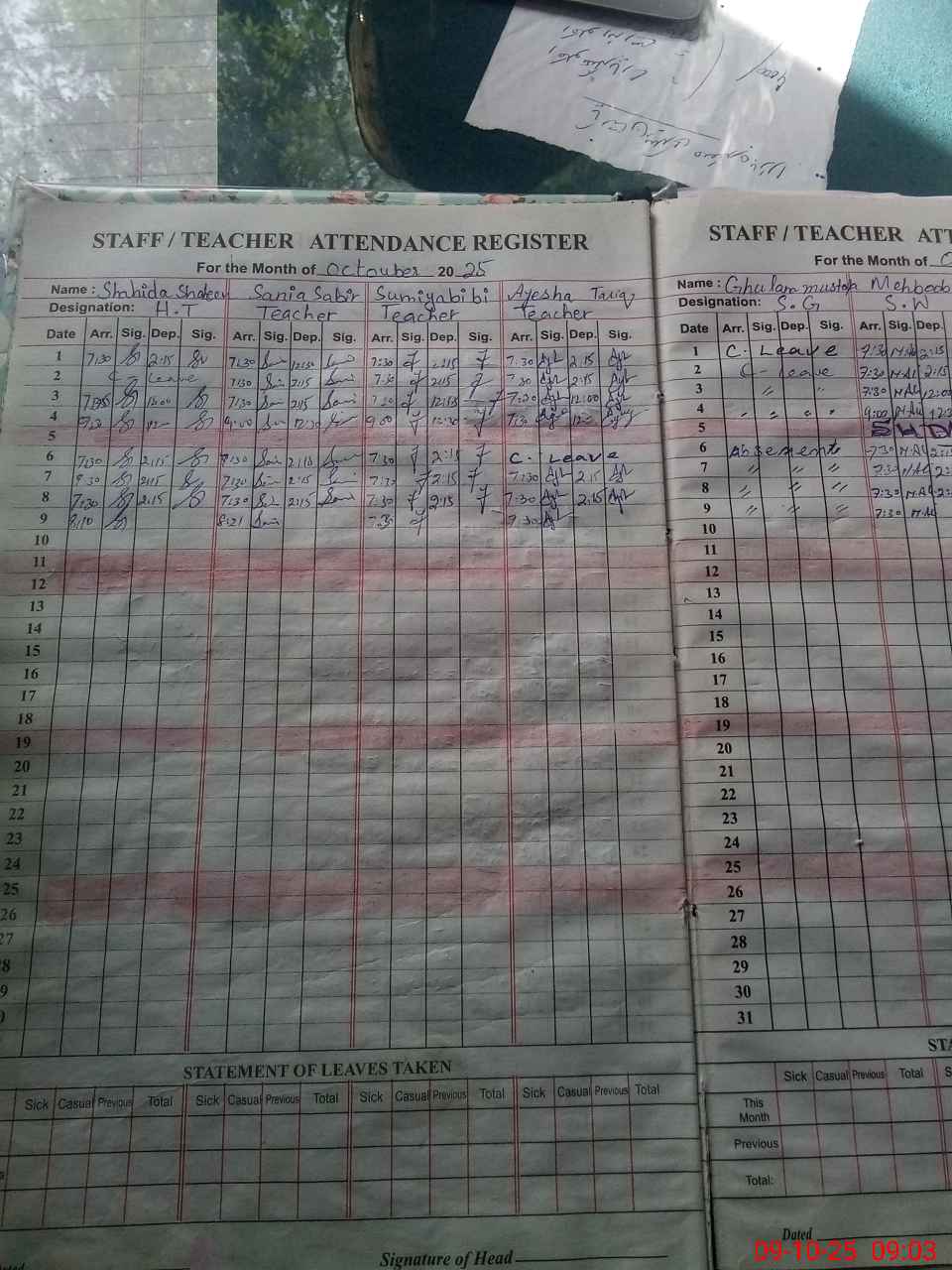 | Monitoring Date: 09-10-2025 | Start Time: 09-10-2025 08:31 AM | End Time: 09-10-2025 09:08 AM | Name of MEA: M.**** KH**** | |