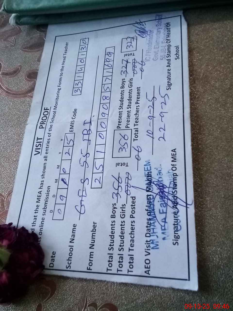 | Certified that this School was Inspected by the Undersigned MEA/DMO Today and the Information Stated Above is as Per Record. | |||||