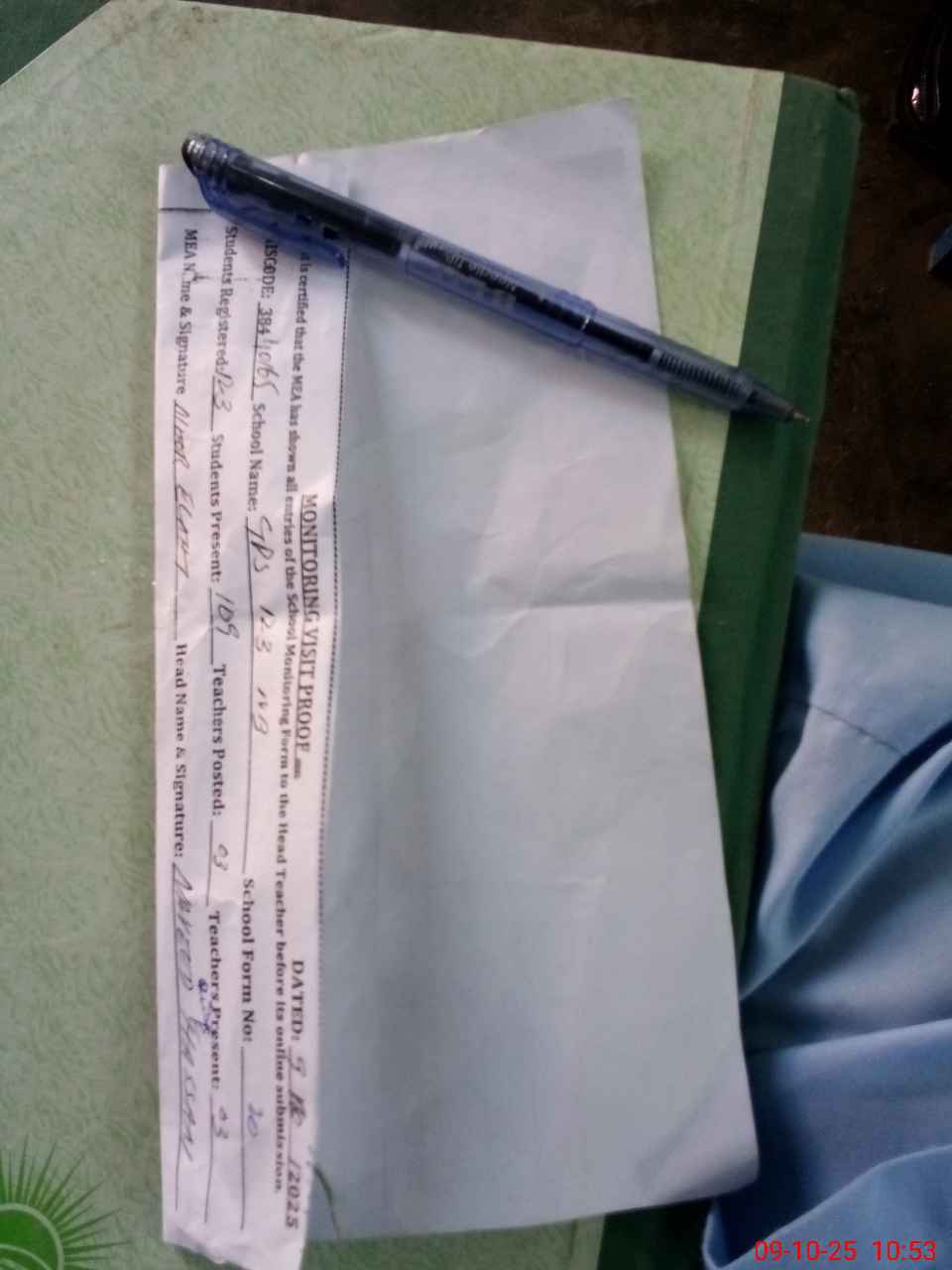| Attendance Register | Head Teacher | MEA with School | Visit Proof |
