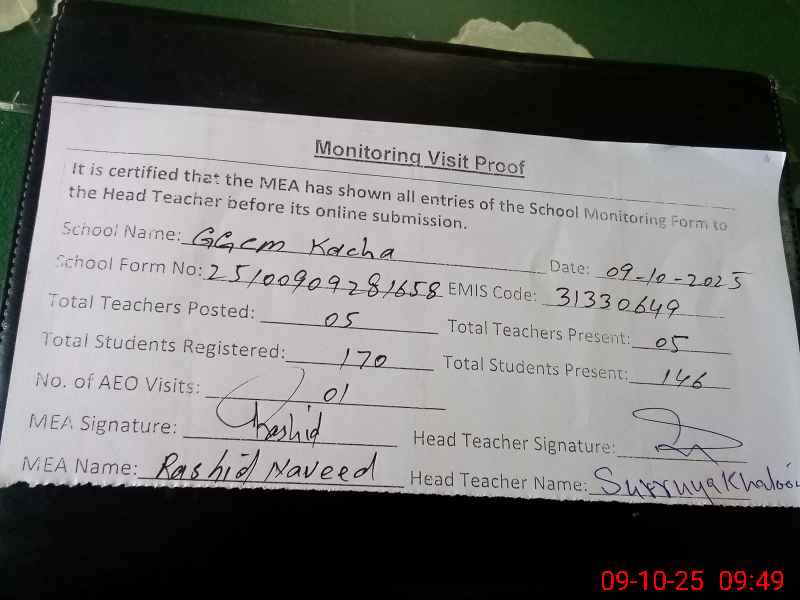 | EMIS Code: 31330649 | Name of School: GGCMS KACHA | |||