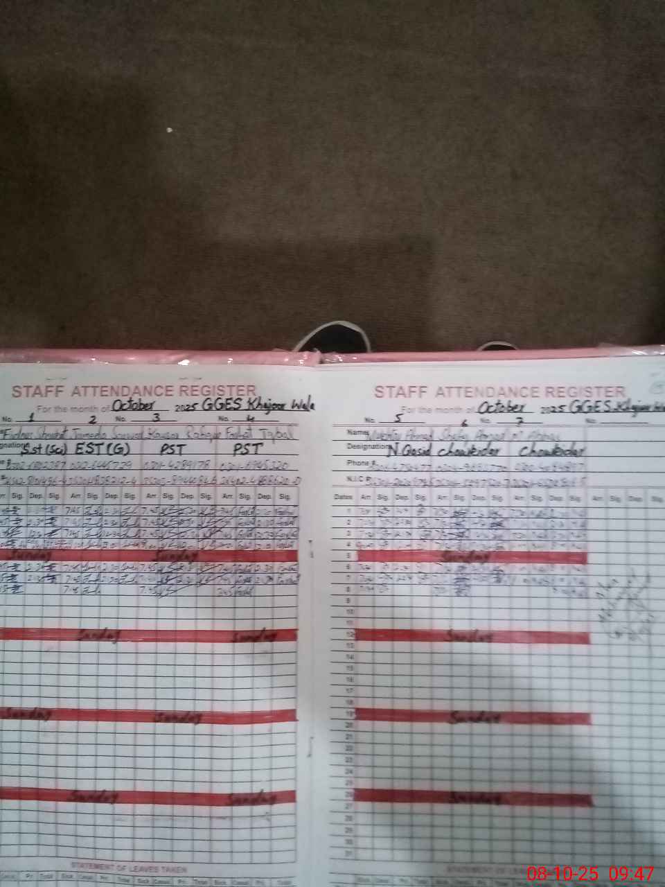 | CNIC | Full Name | Designation | R/C | Absence During Last Calender Month |