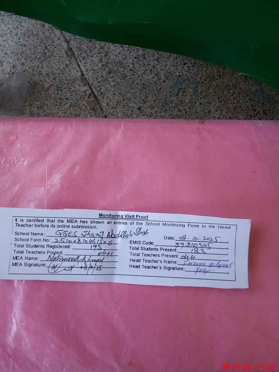 | EMIS Code: 39310505 | Name of School: GGES JHANG ABDULLAH SHAH | |||
