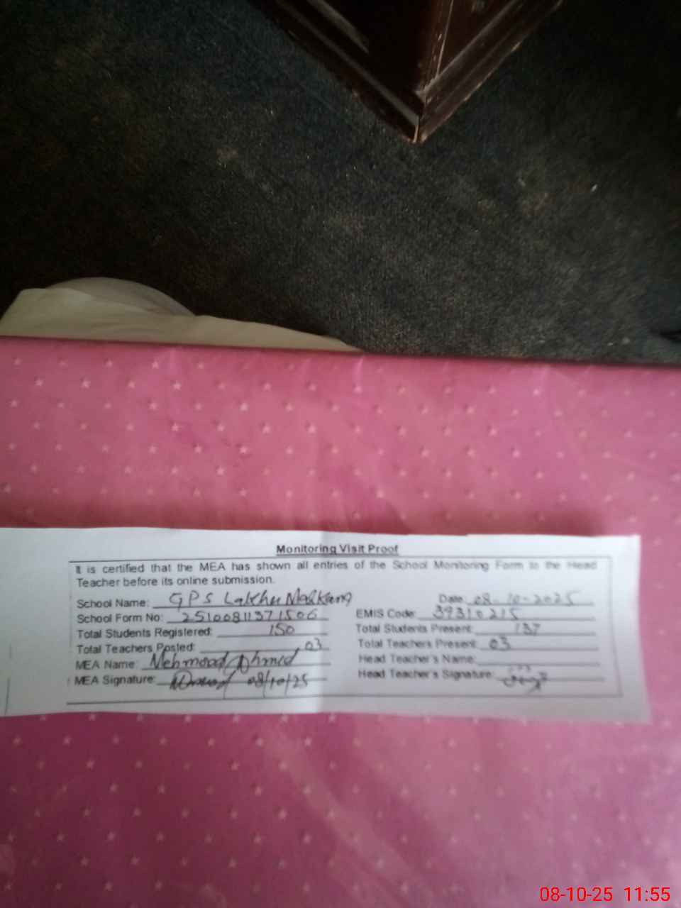 | Certified that this School was Inspected by the Undersigned MEA/DMO Today and the Information Stated Above is as Per Record. | |||||