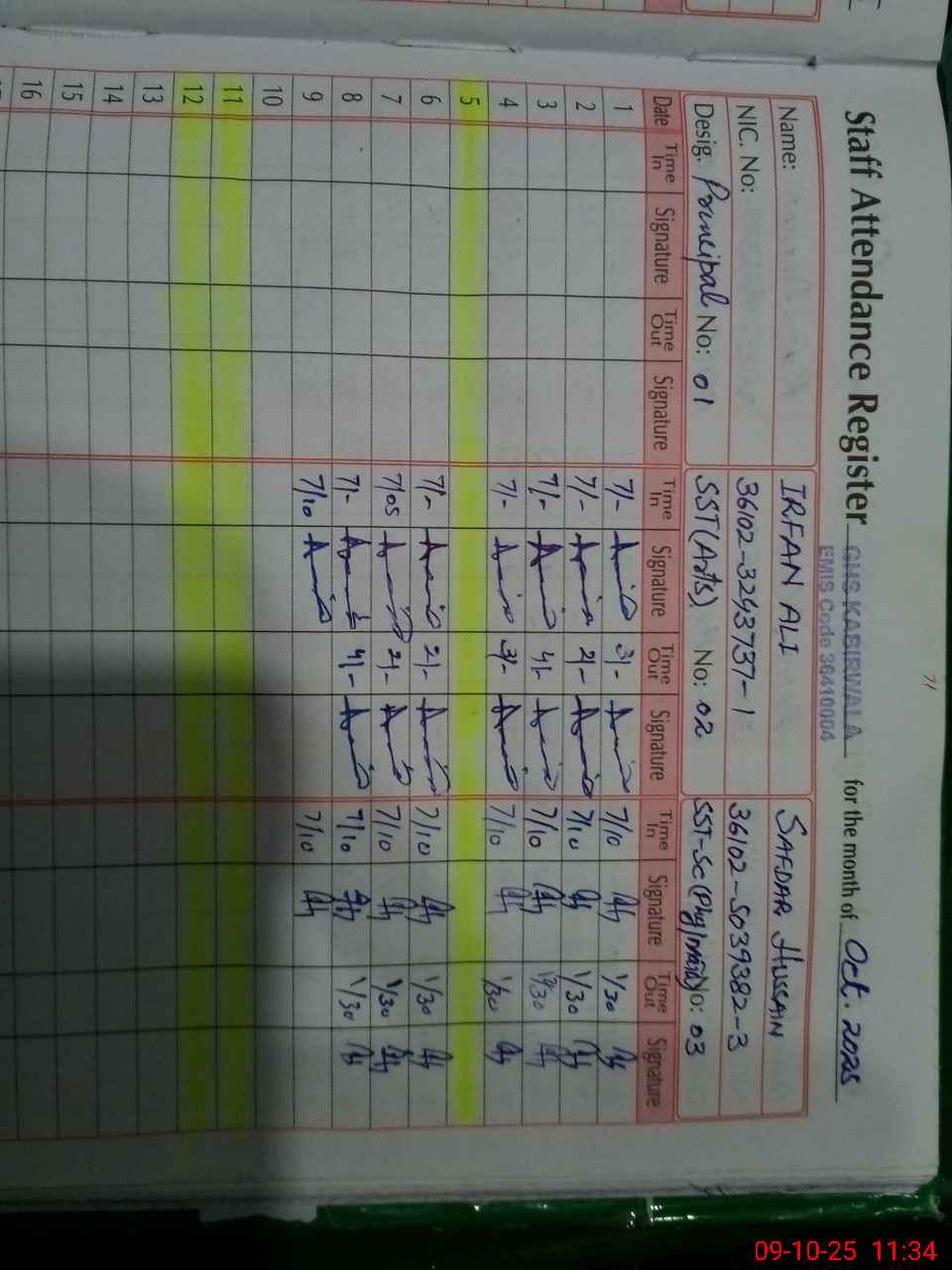| 36**** | Mu**** Ra**** | 5 | 1 | 0 | 0 | 0 | 0 | 0 | 0 | 0 | 0 | 0 | Exam Duty |