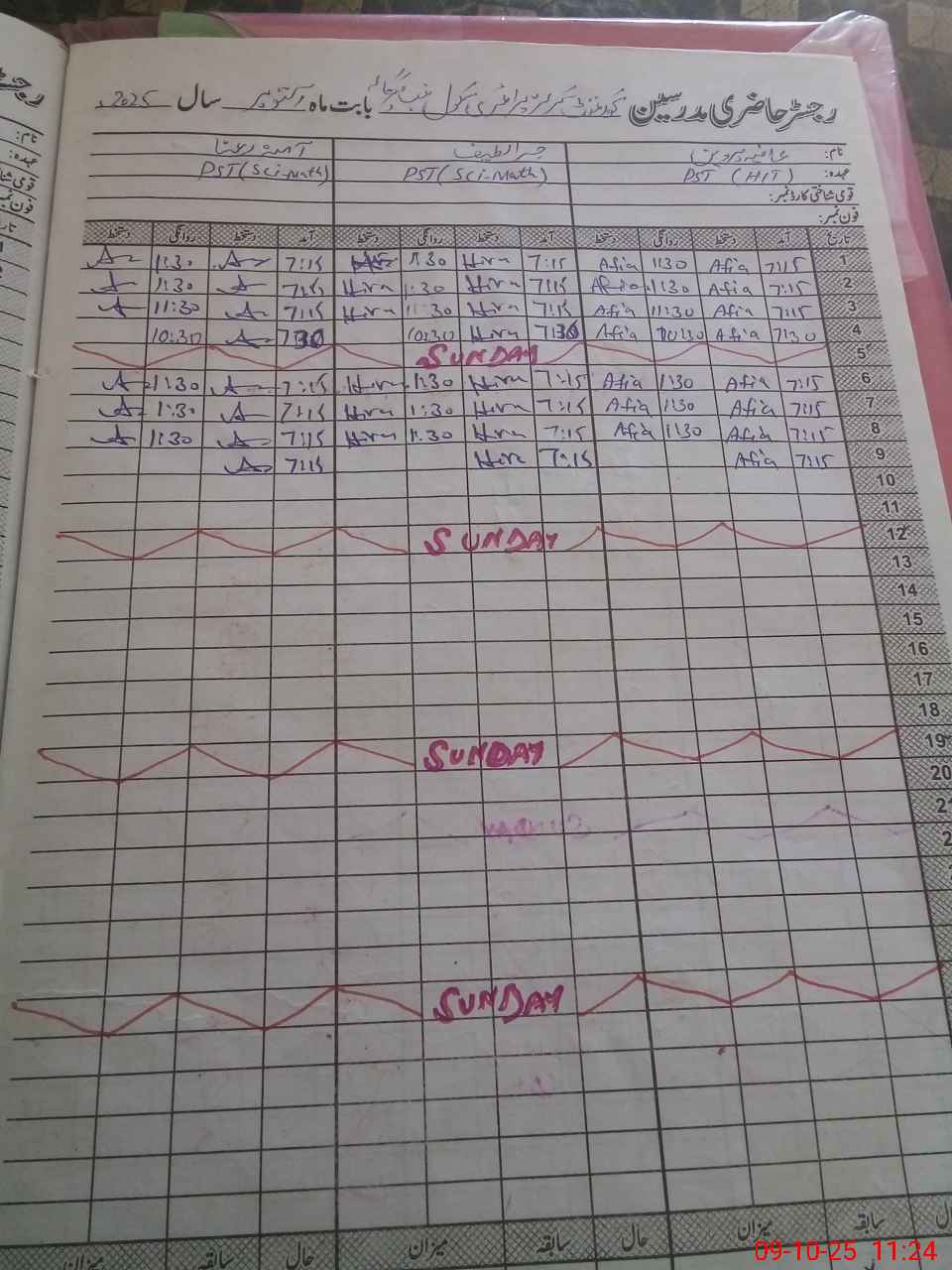 | CNIC | Full Name | Designation | R/C | Absence During Last Calender Month |