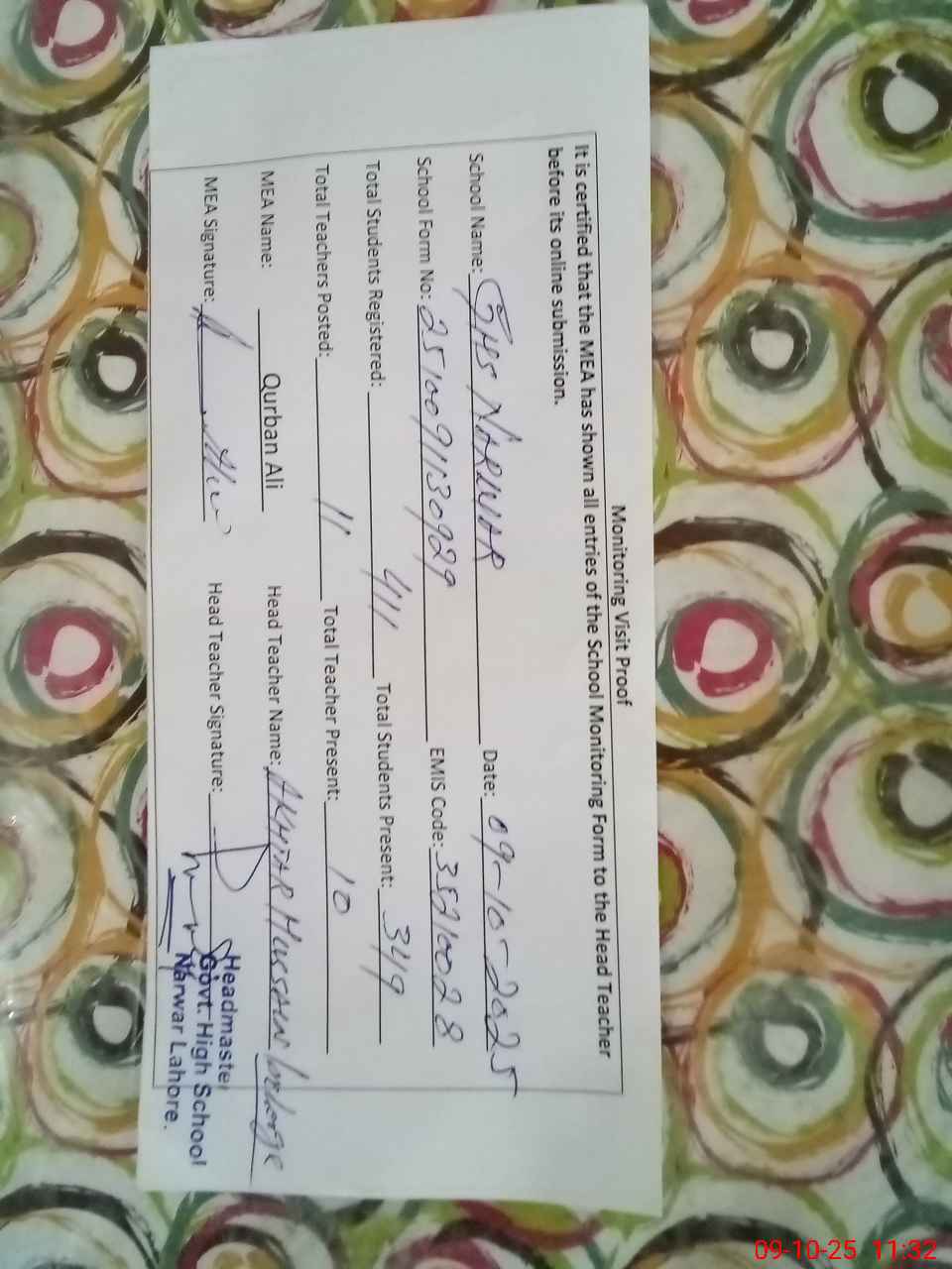 | EMIS Code: 35210028 | Name of School: GHS NARWAR | |||