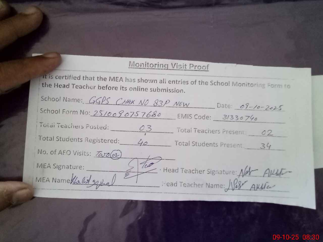 | EMIS Code: 31330740 | Name of School: GGPS CHAK NO. 83/P NEW | |||