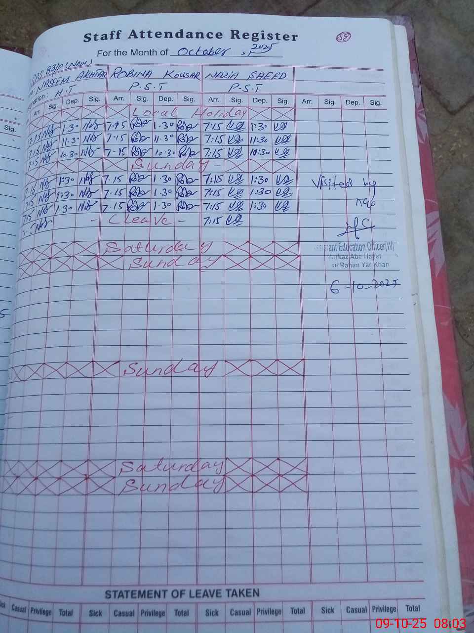 | District: RAHIMYAR KHAN | Tehsil: RAHIMYAR KHAN | Markaz: ABE HAYAT-FEMALE | Level: Primary | |