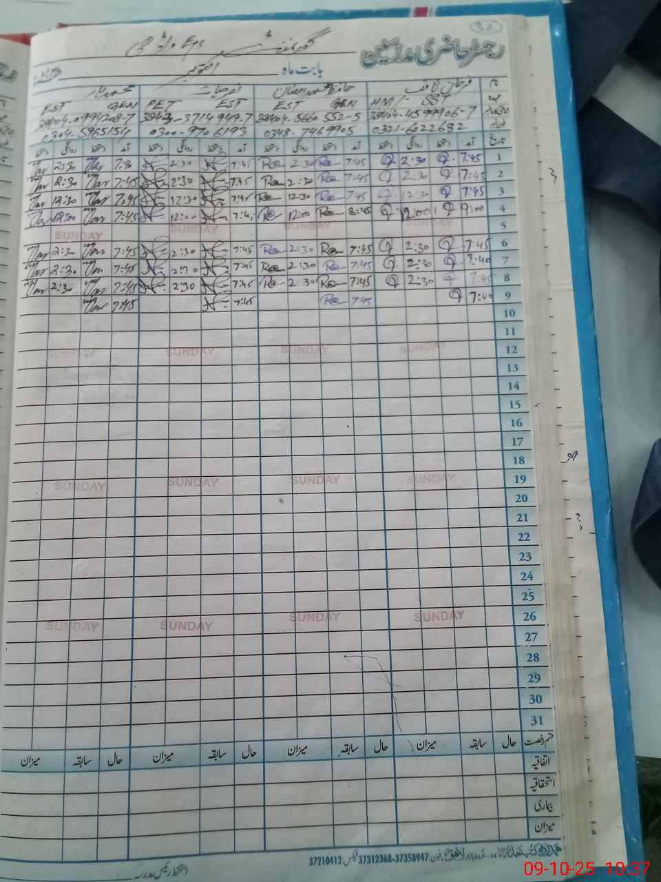 | CNIC | Full Name | Designation | R/C | Absence During Last Calender Month |