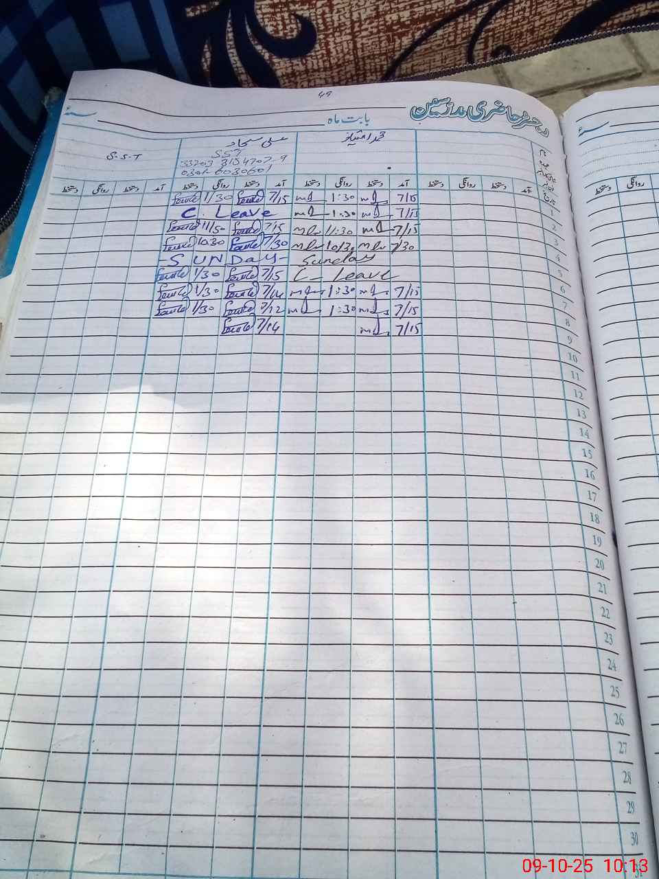 | CNIC | Full Name | Designation | R/C | Absence During Last Calender Month |