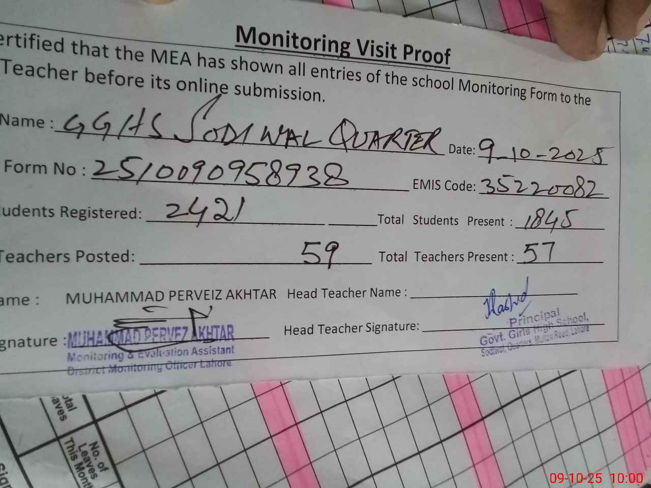 | EMIS Code: 35220082 | Name of School: GGHS SODIWAL QUARTERS MULTAN ROAD LHR. | |||
