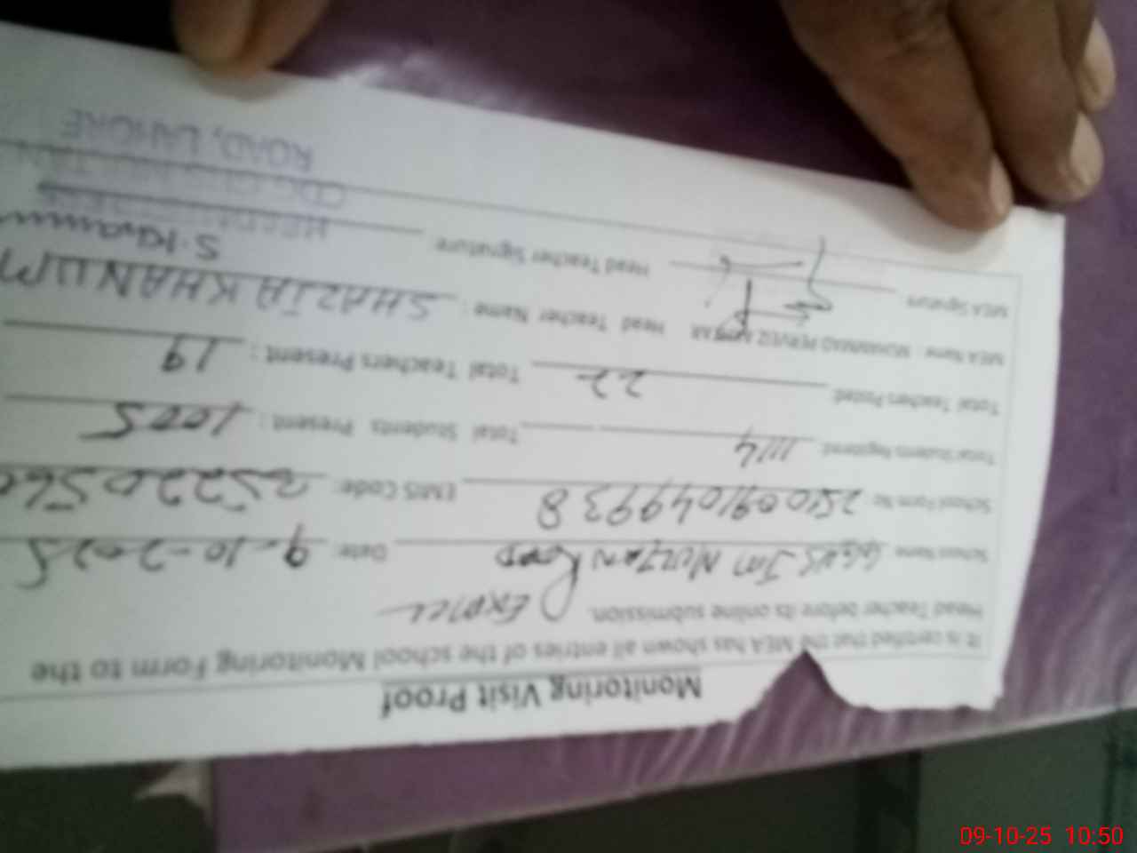 | Monitoring Date: 09-10-2025 | Start Time: 09-10-2025 10:01 AM | End Time: 09-10-2025 10:51 AM | Name of MEA: M.**** AK**** | |