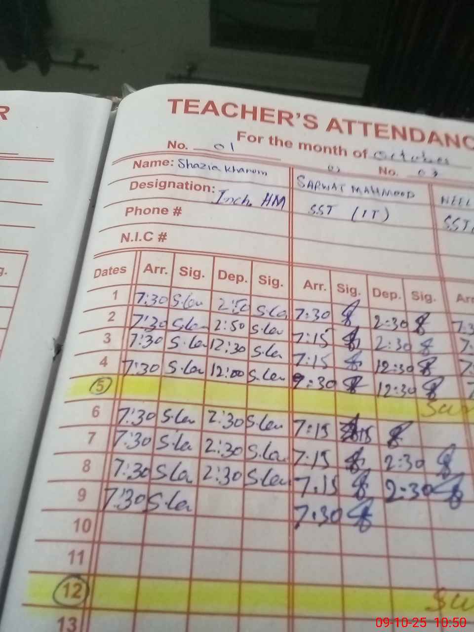 | Name: SH**** KH**** Designation: (School Headmaster's/Headmistress's) SST INCHARGE Phone/Cell Number: 03**** |