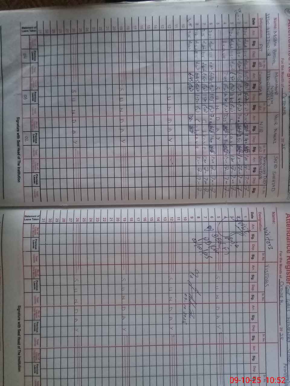 | CNIC | Full Name | Designation | R/C | Absence During Last Calender Month |