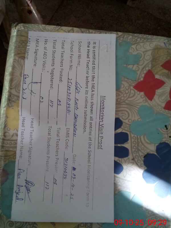 | Certified that this School was Inspected by the Undersigned MEA/DMO Today and the Information Stated Above is as Per Record. | |||||
