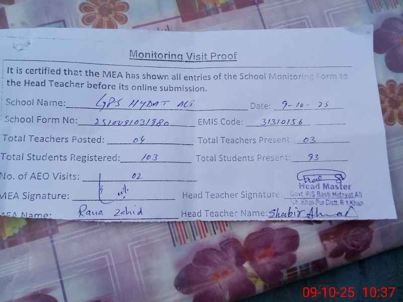 | EMIS Code: 31310156 | Name of School: GPS BASTI HIDAYAT ALI | |||