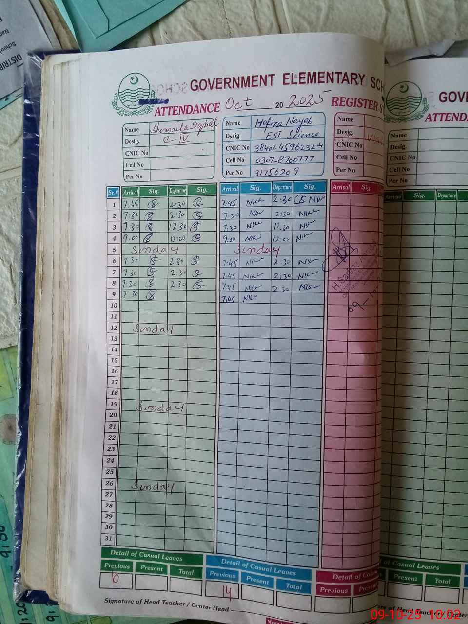 | Name: Sh**** Sa**** Designation: (School Headmaster's/Headmistress's) SST Phone/Cell Number: 03**** |