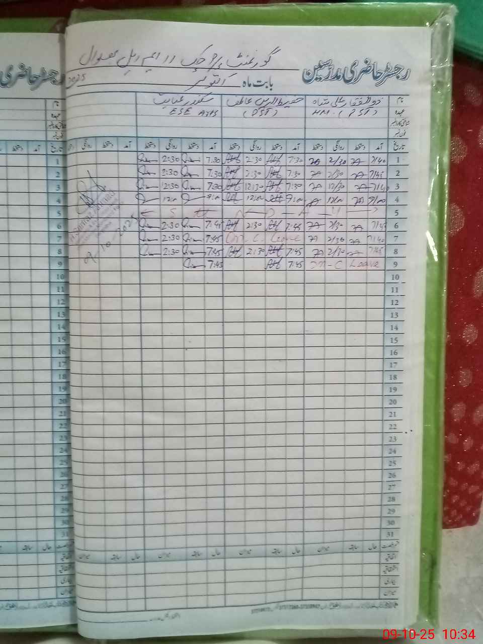 | CNIC | Full Name | Designation | R/C | Absence During Last Calender Month |