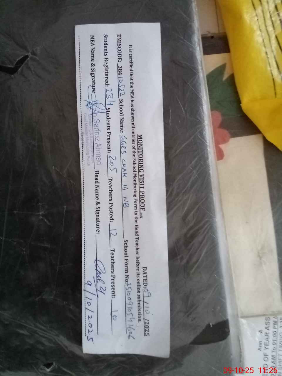 | EMIS Code: 38410522 | Name of School: GGES CHAK NO.14 NB | |||