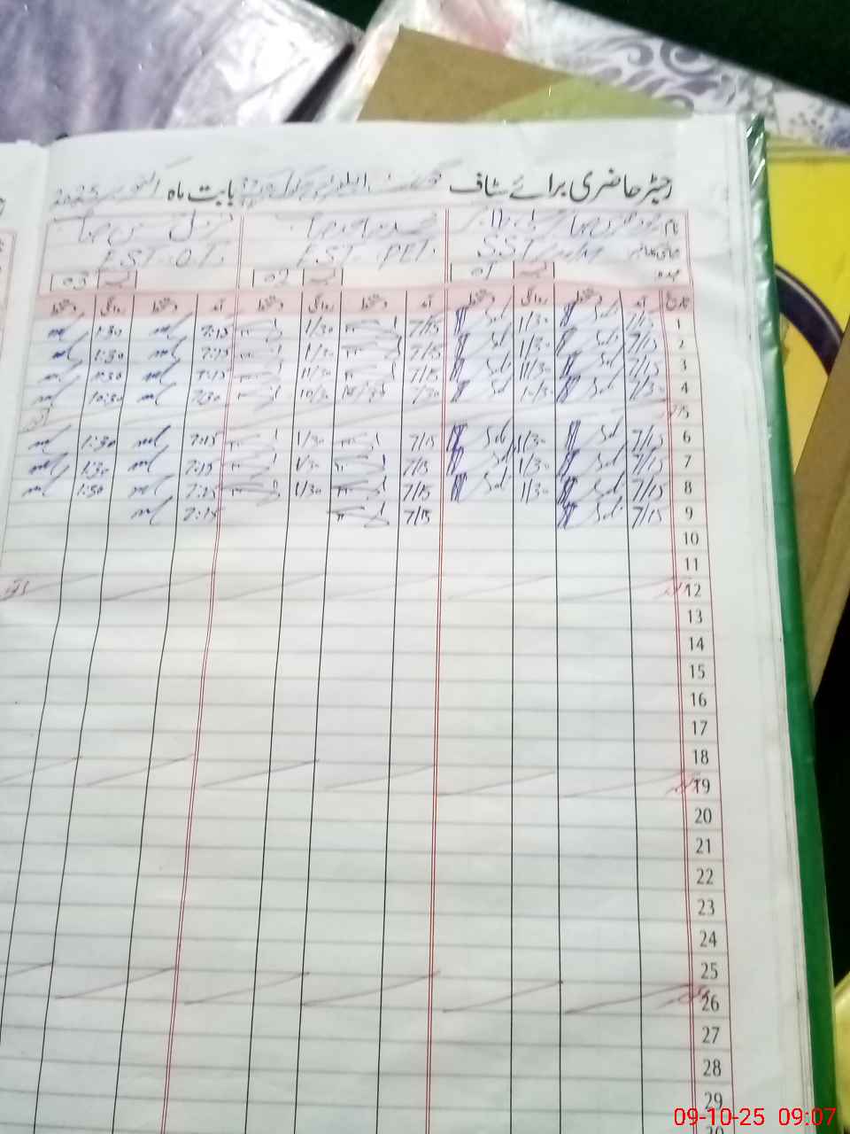 | CNIC | Full Name | Designation | R/C | Absence During Last Calender Month |