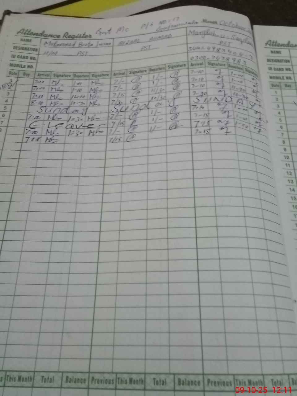 | Name: MBO**** IM**** Designation: (School Headmaster's/Headmistress's) PST Phone/Cell Number: 03**** |
